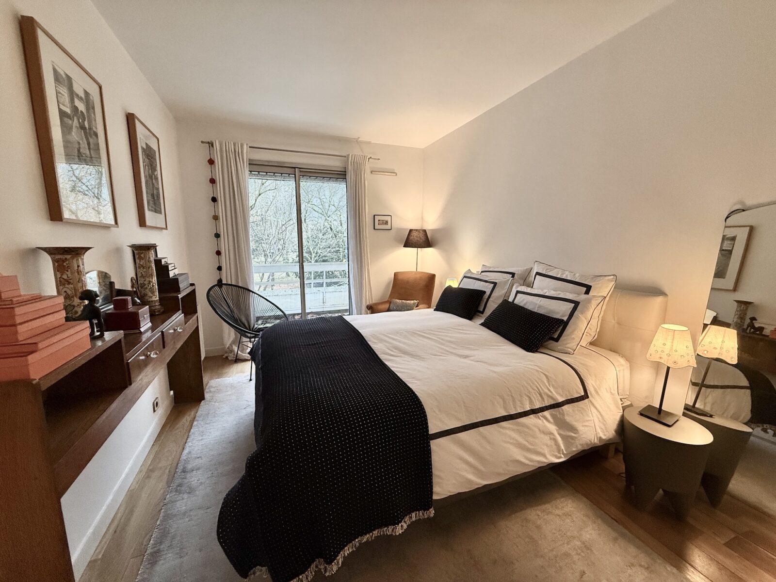 Dans un immeuble Moderne un appartement de 87 M2 en 2 eme étage sur jardin et bois – salon double balcon et terrasse – 2 chambres – salle de bains – wc indépendant – cuisine équipée – Tres bon état – Parking possible.