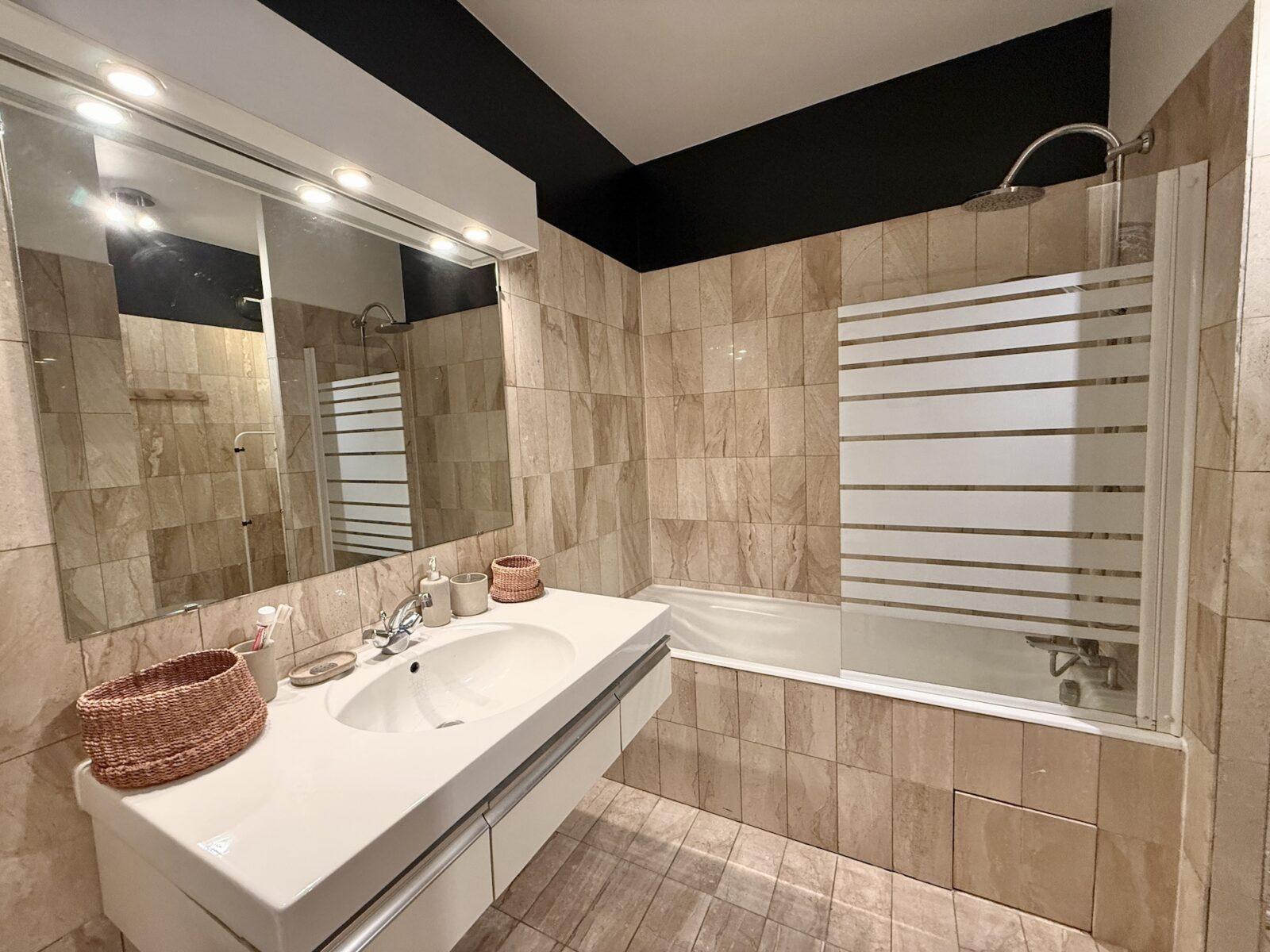 En un edificio moderno, apartamento de 87 m² con vistas a un jardín y un bosque. Dispone de salón doble con balcón y terraza, 2 dormitorios, baño, aseo independiente, cocina equipada, excelente estado y aparcamiento disponible.