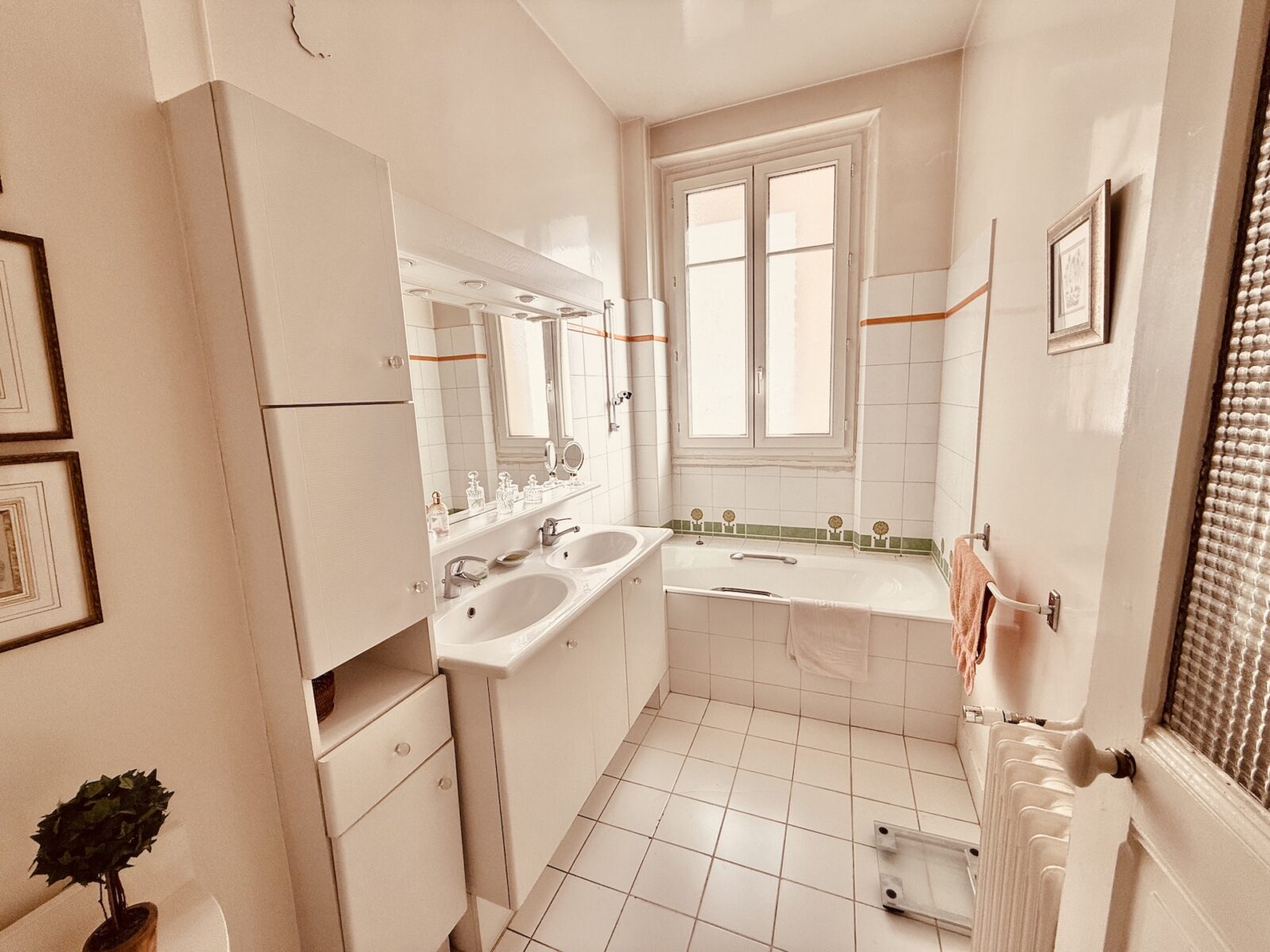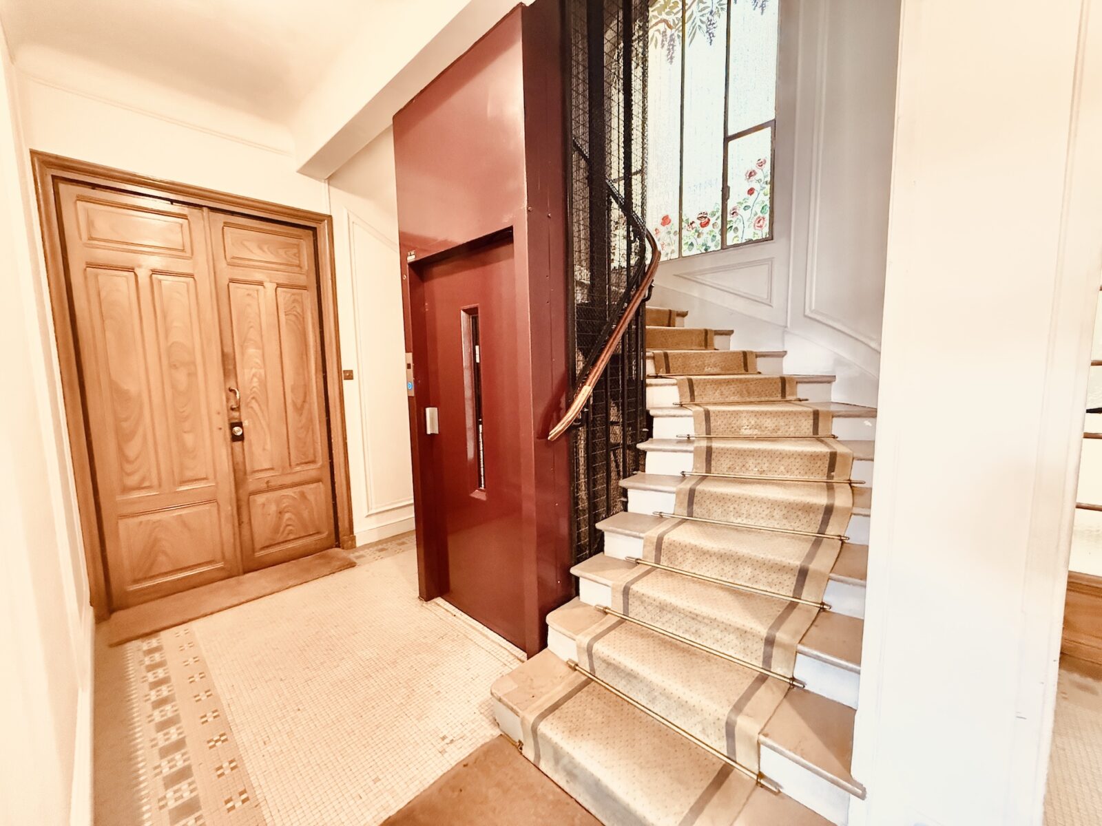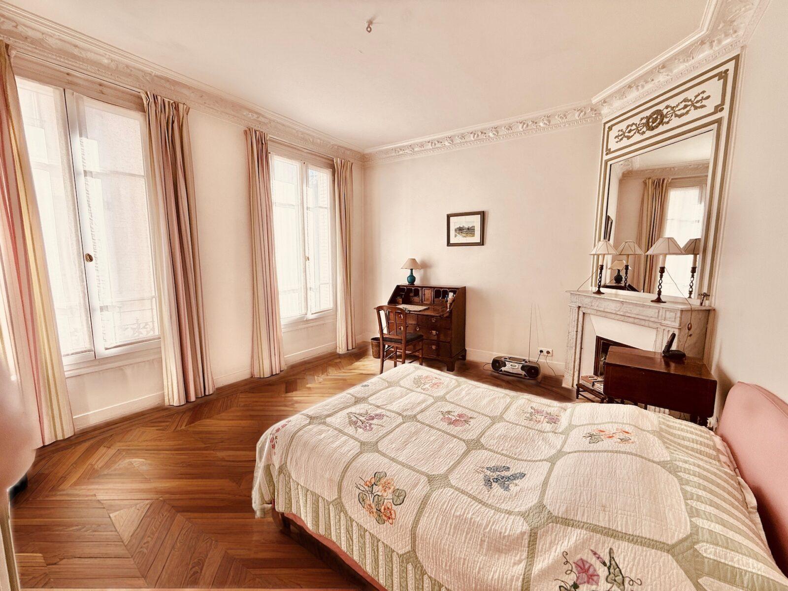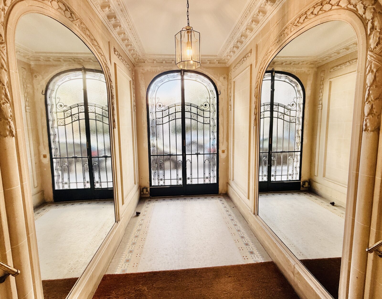 In a charming old building, a 106 m² apartment located on the 3rd floor and comprising a living room, dining room, 2 or 3 bedrooms, bathroom and shower room – Hardwood floors, moldings, fireplaces – Parking available