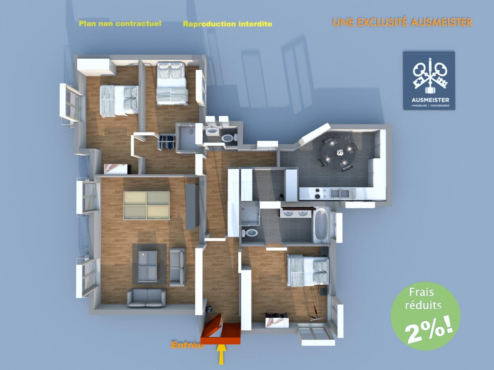 Uniquement chez AUSMEISTER l’agence à 2% vous propose un appartement familial en bon état de 116 M2 en 6 eme étage sans vis a vis.