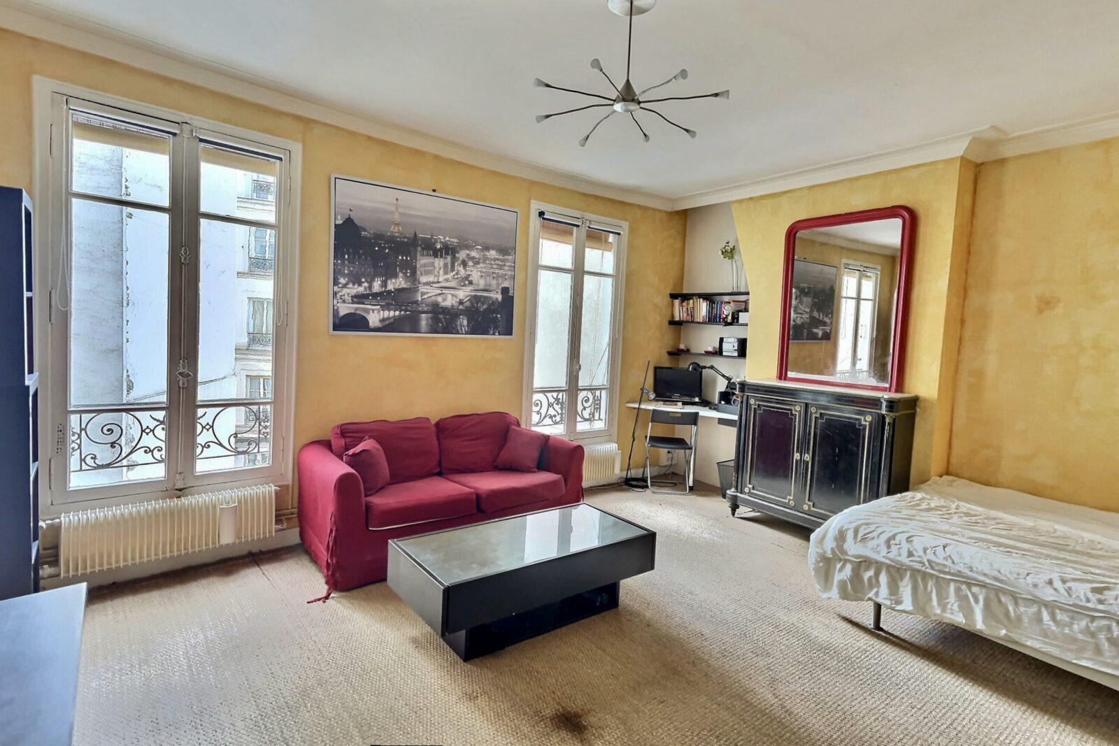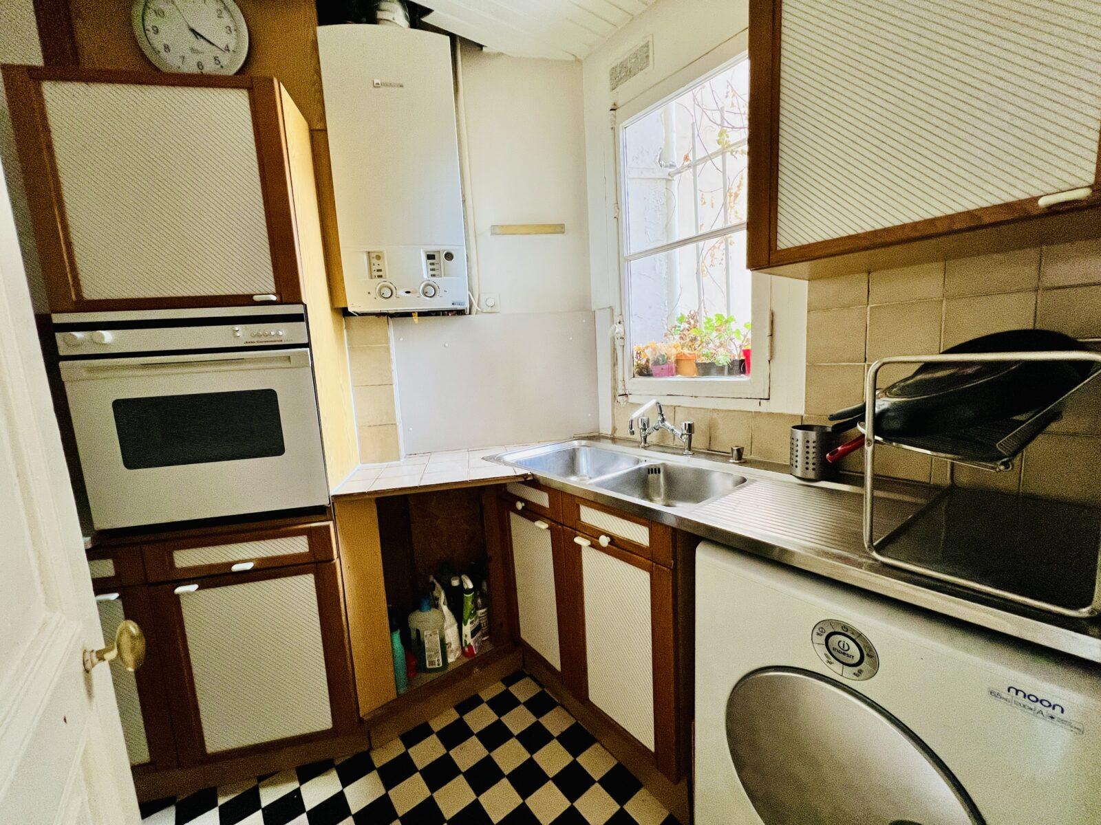 In an old building, an apartment of 34 M2 located on the 3rd floor with elevator – Living room + Bedroom – Kitchen – Work required