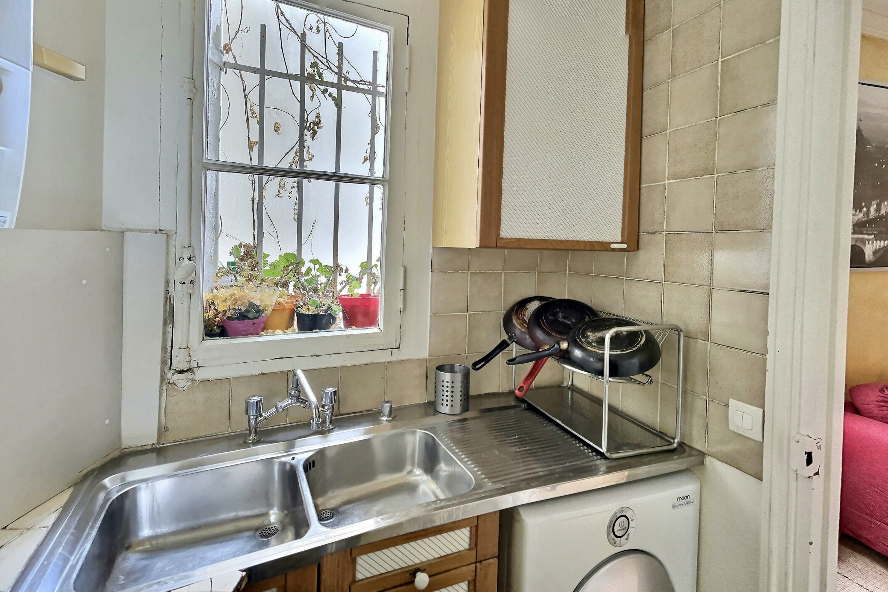 Monatliche Gebühren: 116 Euro – 550 M von der U-Bahn Jussieu – 250 M vom Arab World Institute – 200 M von St. Louis Island – 700 M von Notre Dame – 650 M von der U-Bahn La Sorbonne